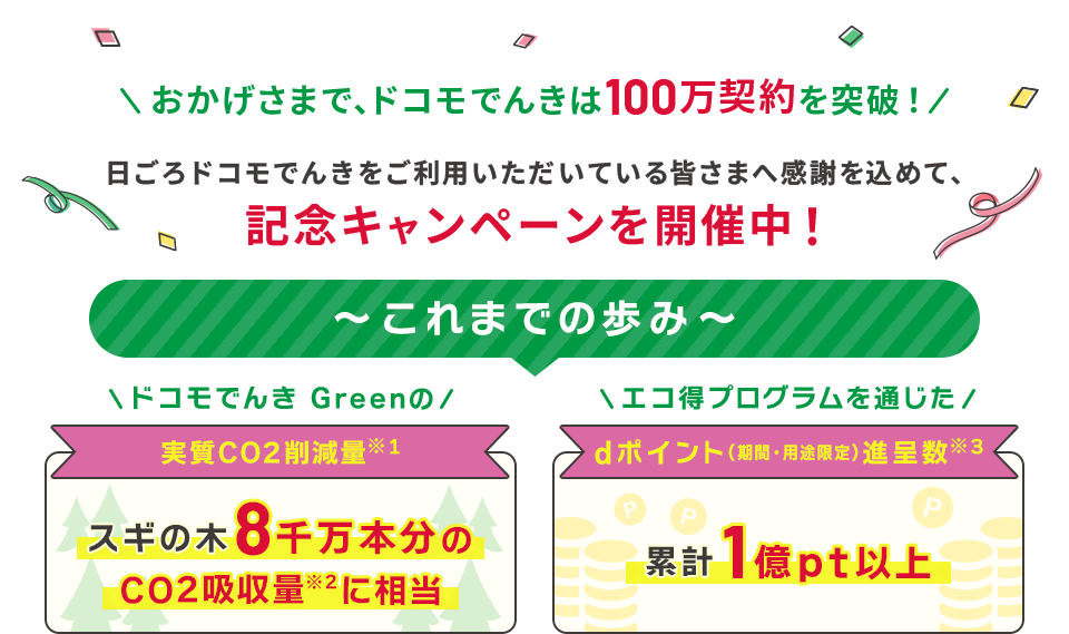 - 2.ポイント進呈時期までの間、「ドコモでんき」の契約を継続されていること
